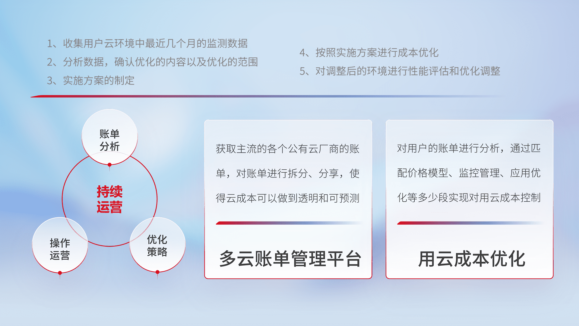 监控业务系统资源开销,,对资源的消耗精确计量,,实现费用的透明化管理,,,,不断提升资源使用率,,,,调整资源购买方式,,降低资源费用成本,,,,用云成本可预测、、用云费用可优化,,云资源配额有据可依。。